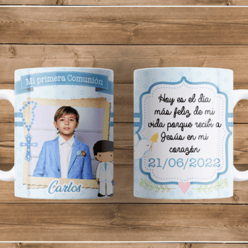 Tazas con diseños primera comunión personalizables con foto