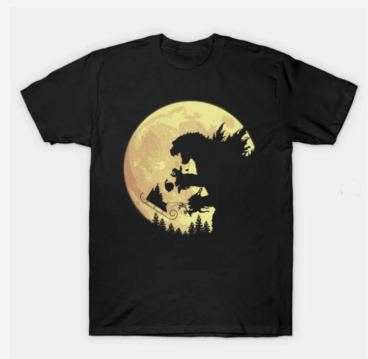 ¡Deja que la magia de Godzilla ilumine tu Navidad con nuestra camiseta exclusiva! Presentamos a Godzilla en una escena épica bajo la luz de la luna, surcando el cielo en un trineo improvisado. Es una visión única que combina la grandiosidad de Godzilla con la alegría festiva.