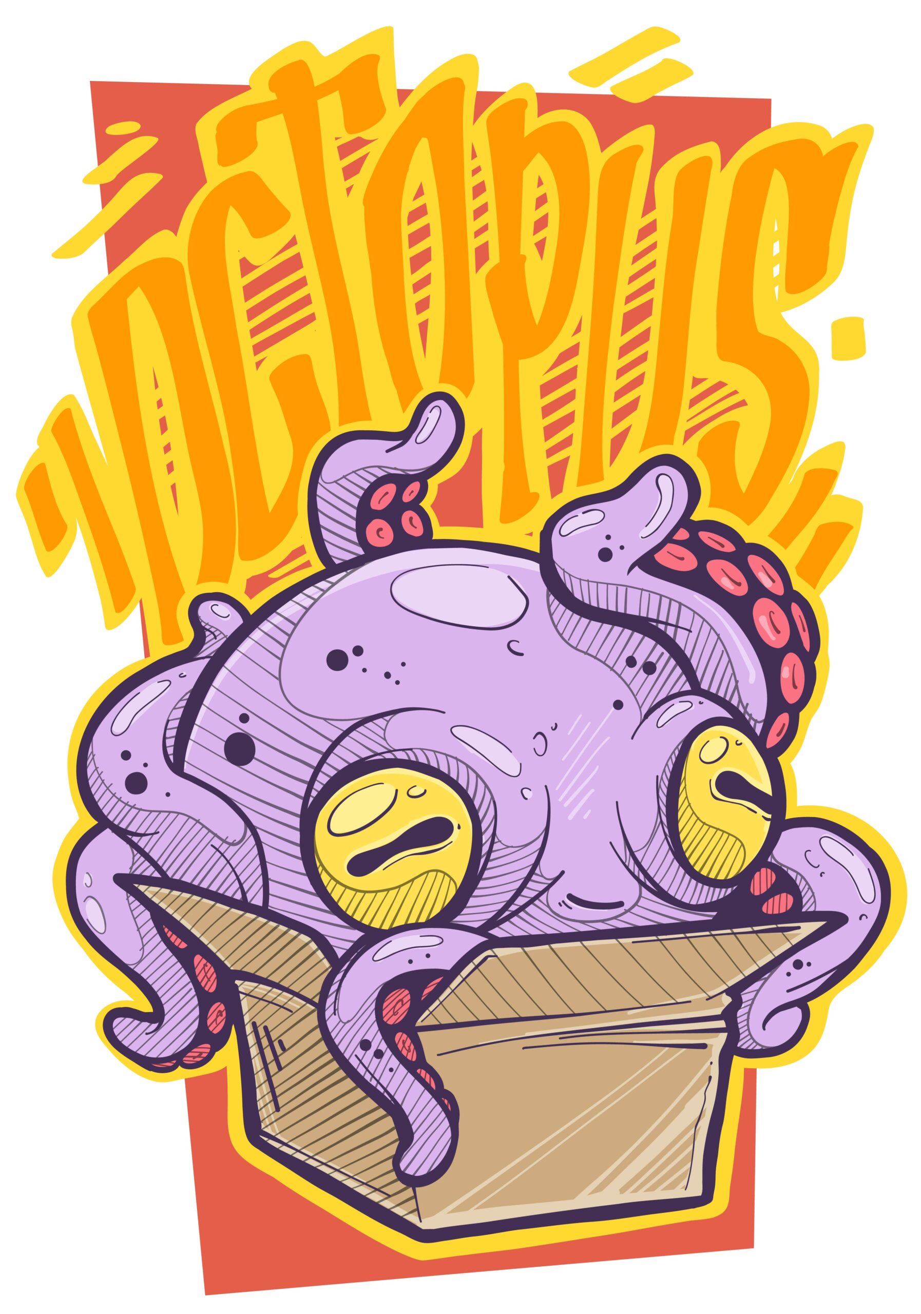 1. Diseño Divertido: Presentamos a un pulpo asomando su tentáculo de una caja, creando una ilusión intrigante y un toque de misterio.