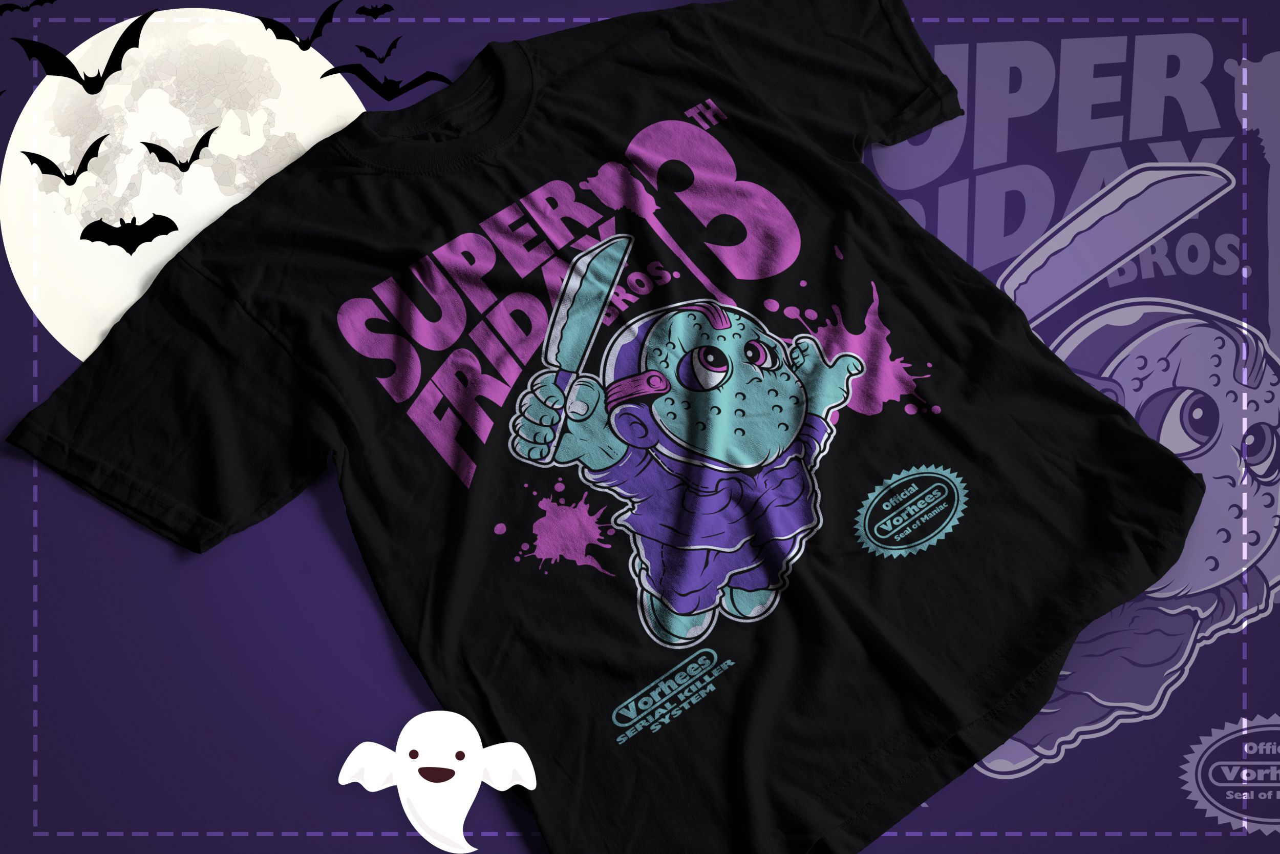 No te quedes sin esta camiseta que combina a Super Mario con personajes de terror como Jason o Freddy Krueger, una prenda creativa y única.