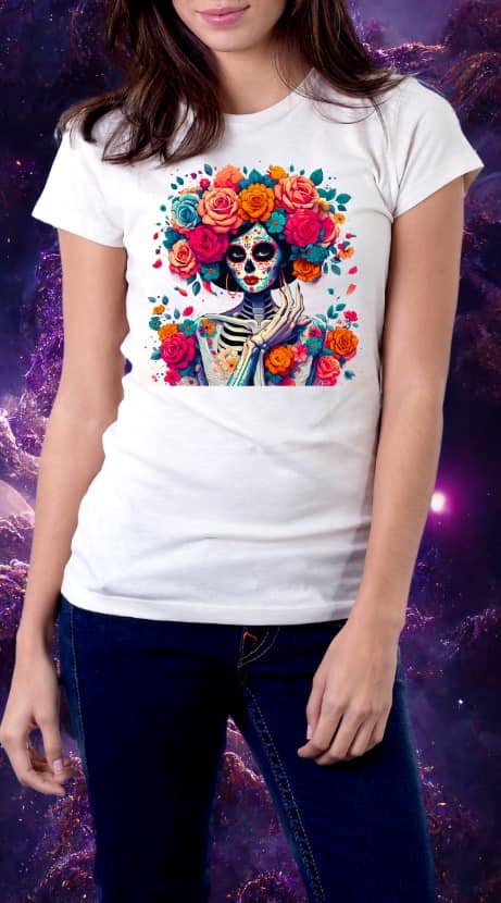 3. Estilo Único: Estas camisetas capturan la belleza y el misterio de la Catrina, convirtiéndolas en una declaración de estilo distintiva.