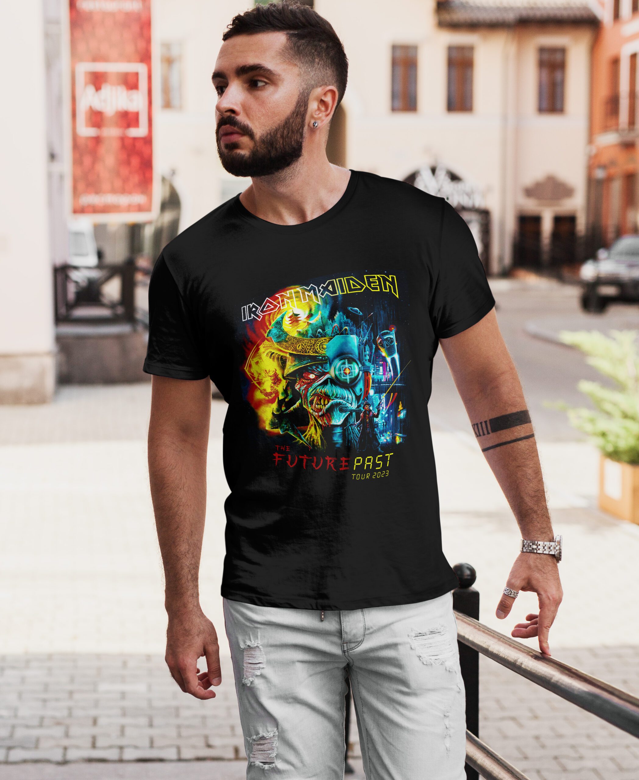 Colores y Detalles Auténticos: Colores vibrantes y detalles intrincados que resaltan la intensidad y la energía del metal. Las prendas son una declaración de devoción al legado musical de Iron Maiden.