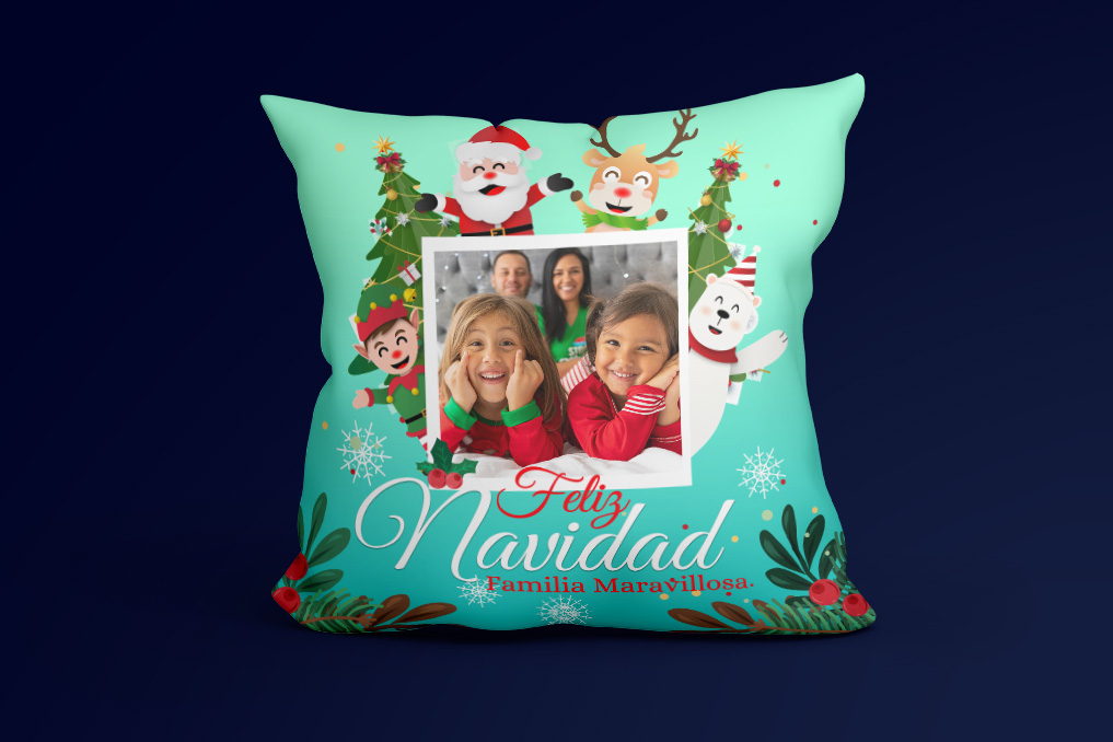 ¡Celebra la temporada con un toque personal y acogedor! Obtén tu Cojín Personalizable de Navidad y transforma tus fotos en recuerdos que perdurarán durante las fiestas y más allá.