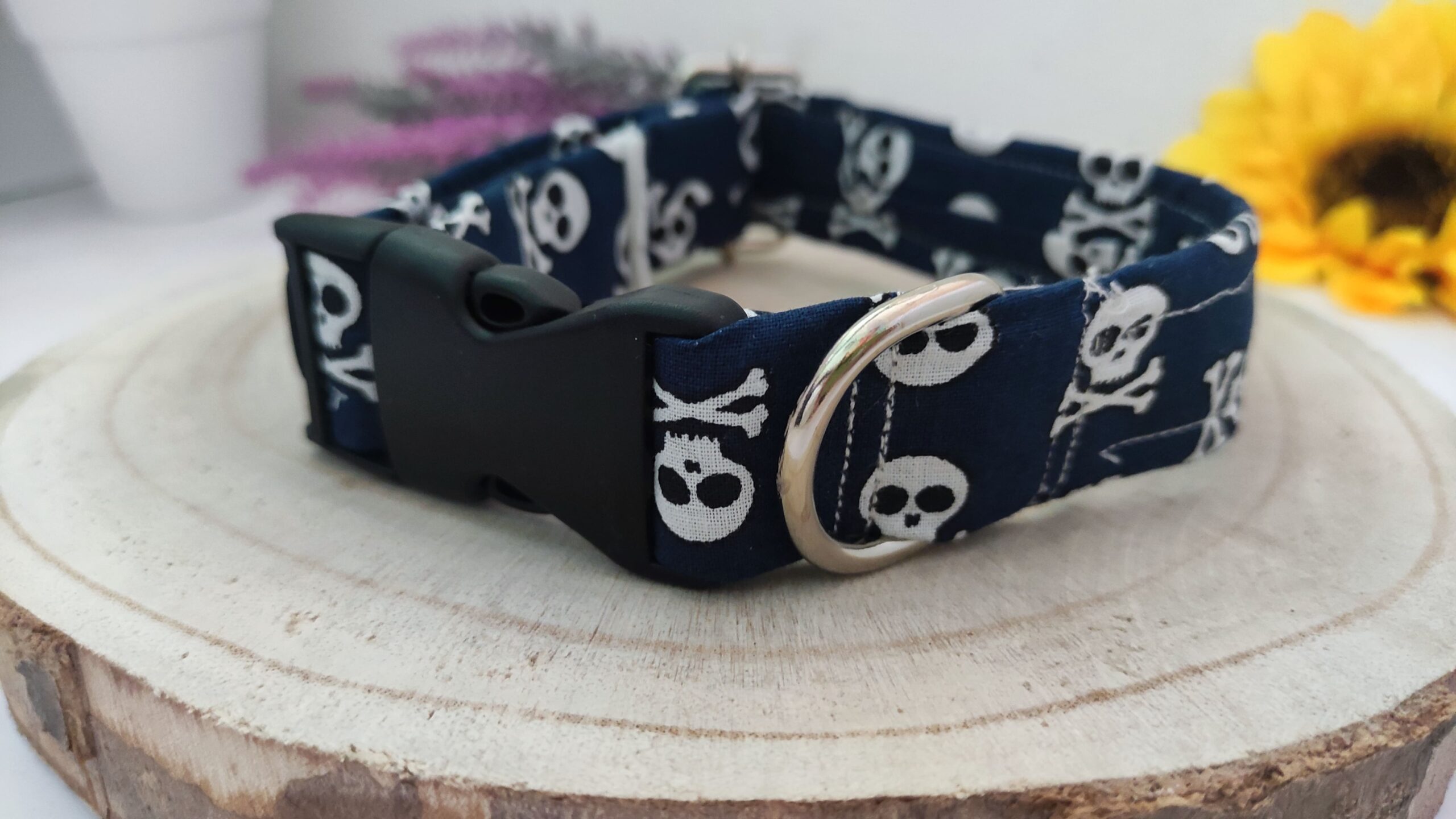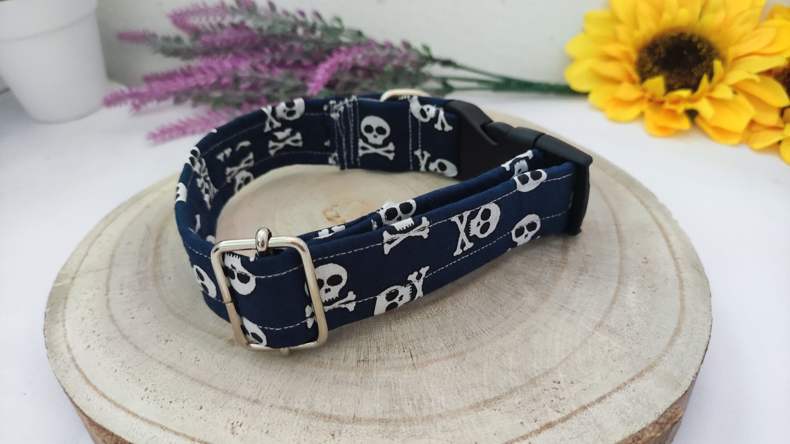 Este collar de bandera pirata es ideal para perros con espíritu aventurero y para aquellos dueños que desean que su mascota se destaque con un diseño único.