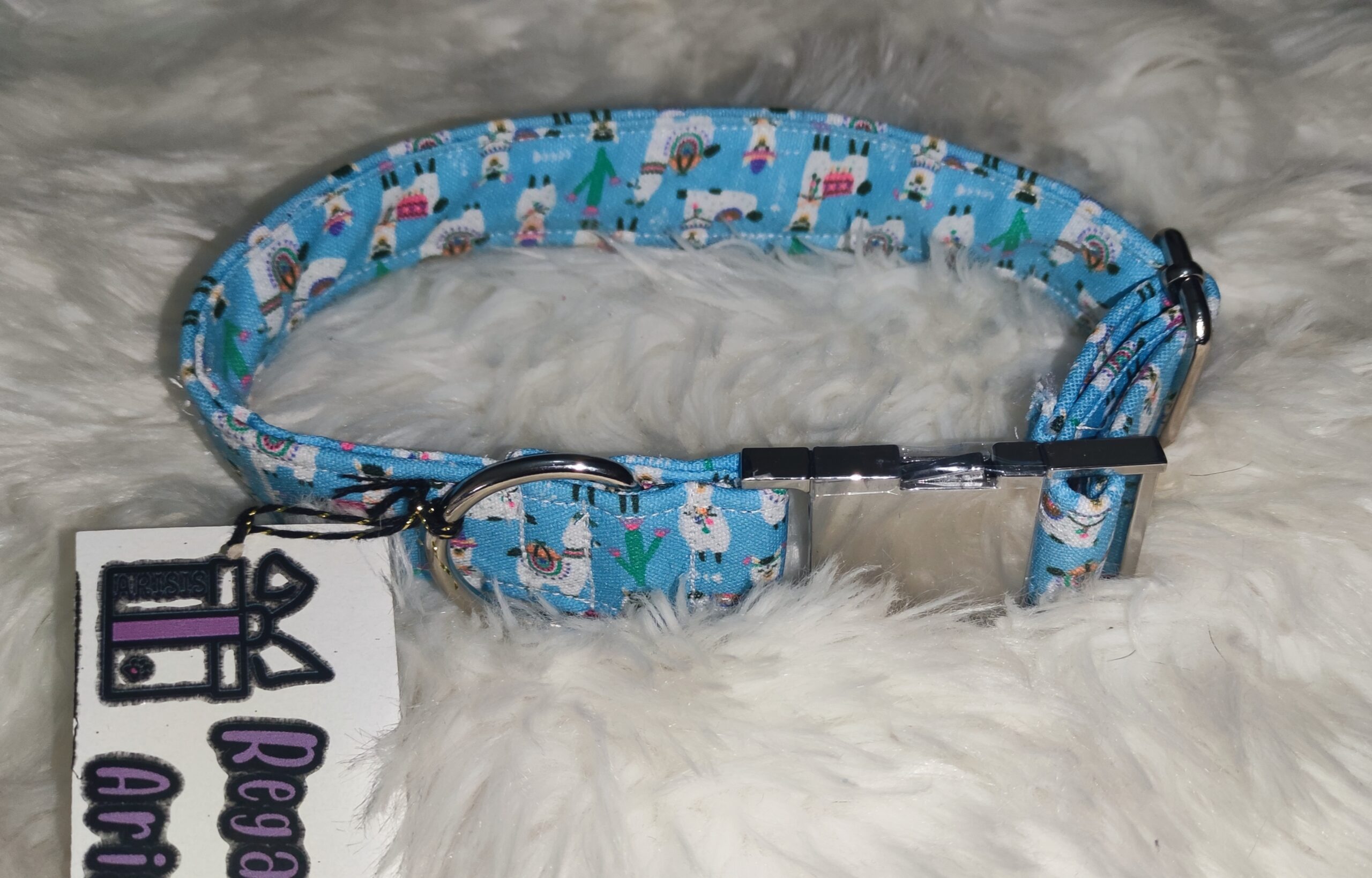 Puedes elegir entre nuestras diferentes telas, cada una de ellas son de edición limitada, como nuestras tela de estampado de Alpacas, por lo que solo habrá un número limitado de collares con cada tela, no te quedes sin el tuyo.