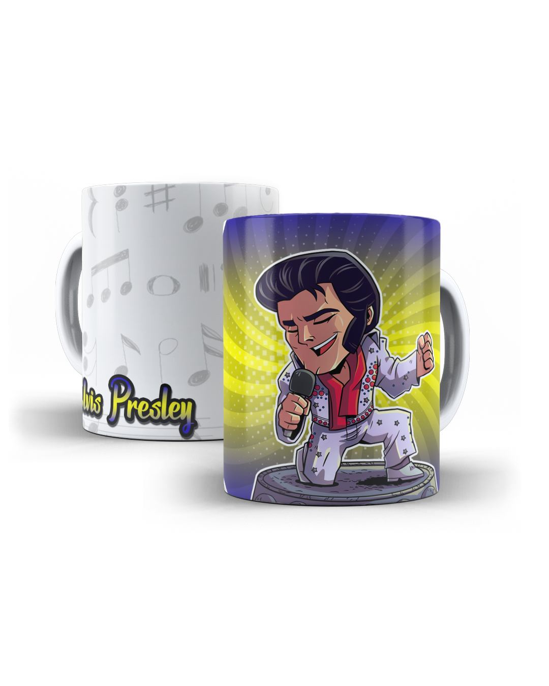Puedes elegir entre una amplia selección de cantantes icónicos, como Elvis Presley, Frank Sinatra, Aretha Franklin, Bob Marley, Freddie Mercury y muchos más. Cada taza cuenta con una impresión de alta calidad que garantiza una imagen duradera y resistente al lavado.